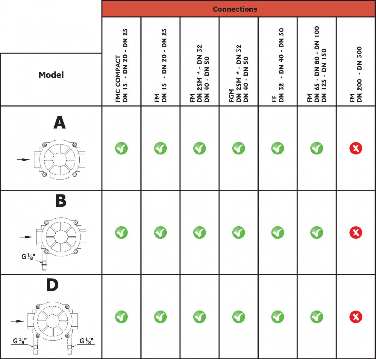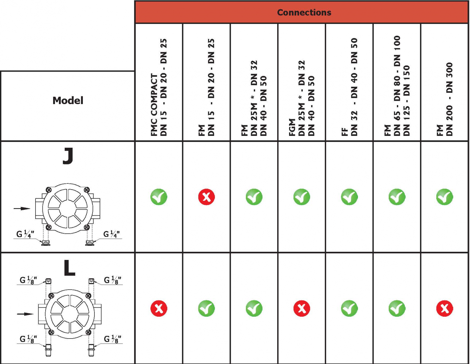 • Threaded connections Rp:(DN 15 ÷ DN 50) according to EN 10226