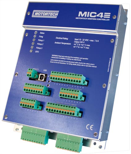 The new economically attractive MOTORTECH development convinces with a future oriented electronical concept for more power and a significantly higher degree of efficiency. Based on the MIC4 series, MOTORTECH produces a special controller version as a replacement for the TEM-ZS1 and TEM-ZS3 ignition system used on MWM®/DEUTZ® gas engines.
