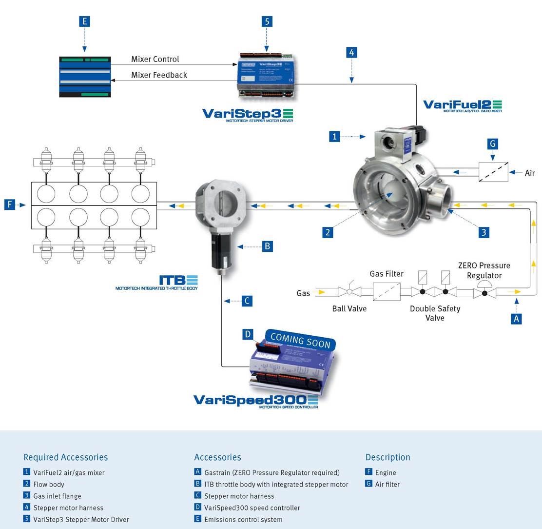 The VariFuel2 is a high-tech variable Venturi type mixer that can constantly adjust to any fuel changes and allows the engine to operate at its most efficient point. Series 100, 140, 200 and 250 are available for engines with an air requirement up to 5.200 m3/h. Coupled to an air/fuel ratio controller, lean-burn or stoichiometric, it precisely regulates the mixture. It is very popular for applications with constant changes in calorific value of fuel. VariFuel2 uses a high precision stepper motor with an exclusive reprogrammable driver board (VariStep3). Various flow bodies and flexible inlet and outlet configurations allow fully flexible cross section adjustment.